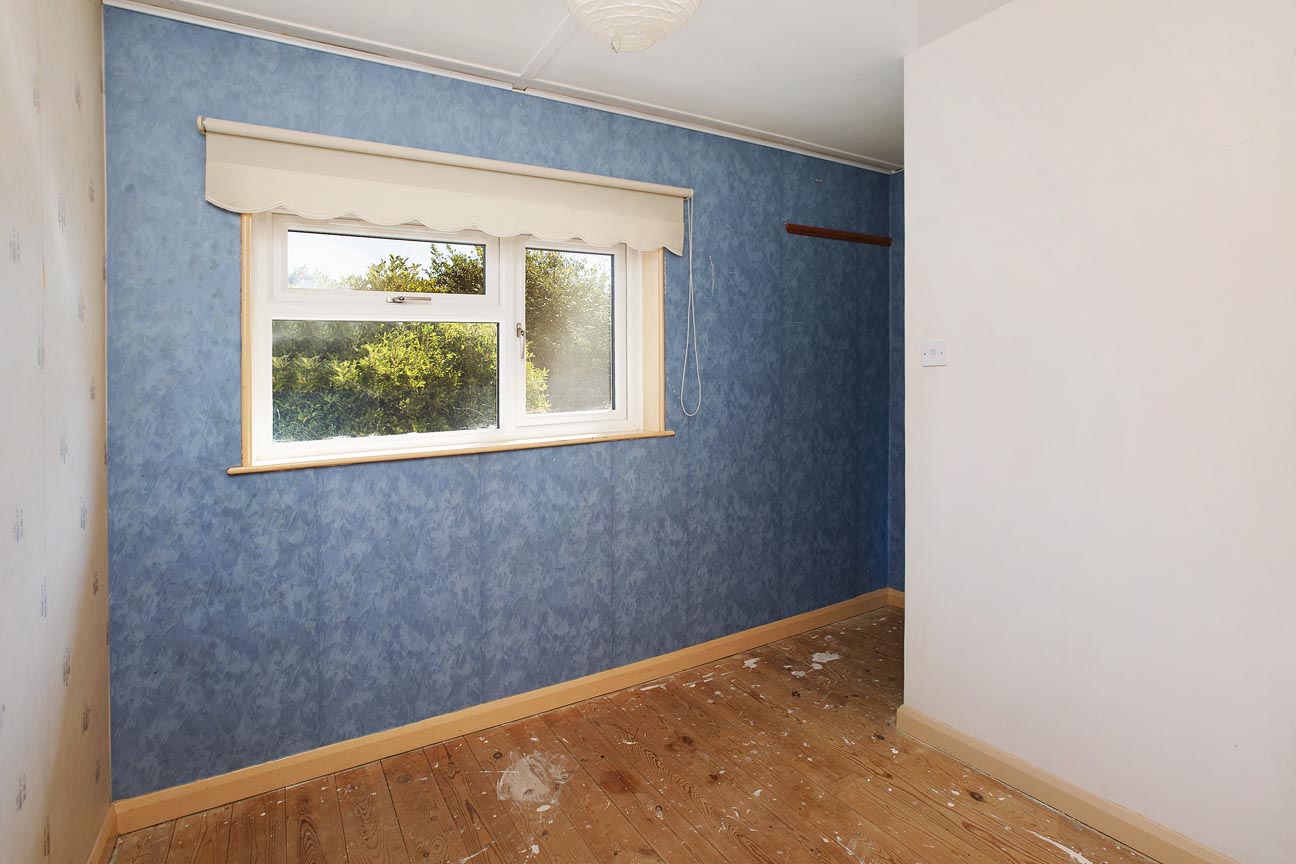 The lounge is particularly bright with two large windows, one overlooking the front garden and the other overlooking the enclosed rear garden. There is a stone fireplace with wood burning stove and picture rails. The kitchen is a good size with room for a table and the potential for expansive cupboards and worksurface, electric and plumbing for appliances, a large window to the rear garden allowing plenty of light and a door accessing the garden and store area.