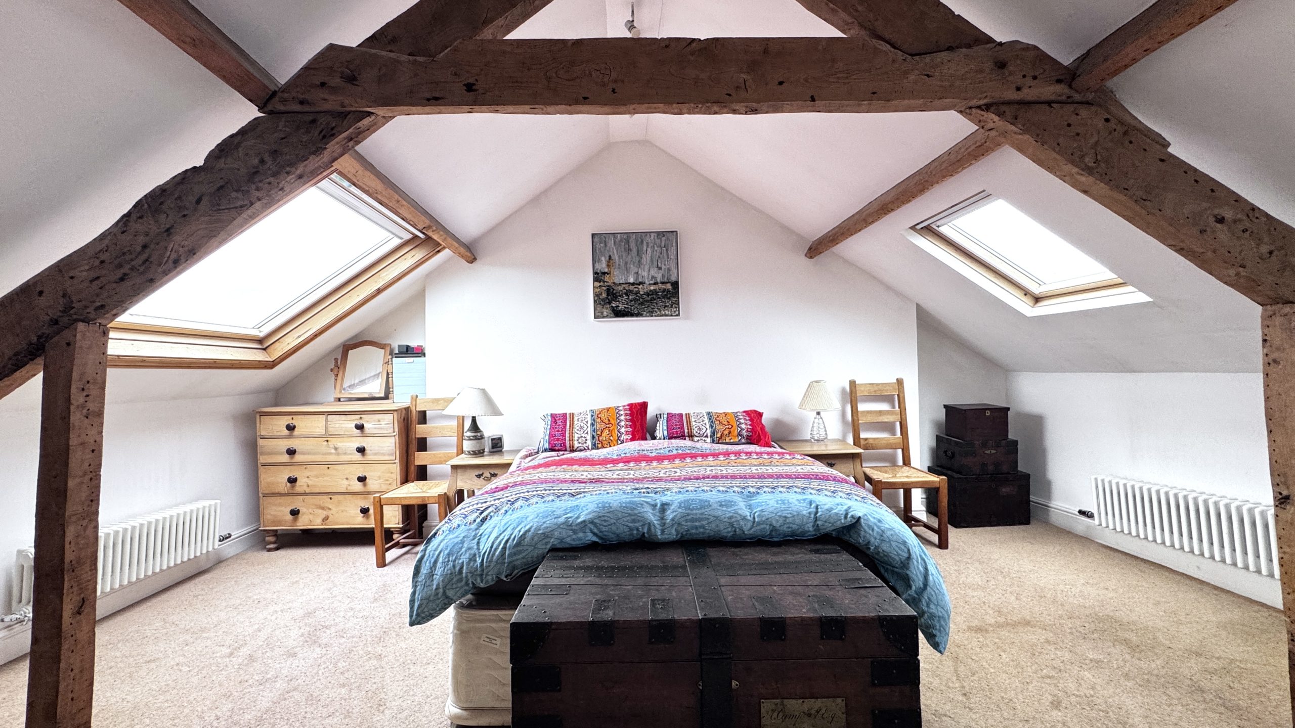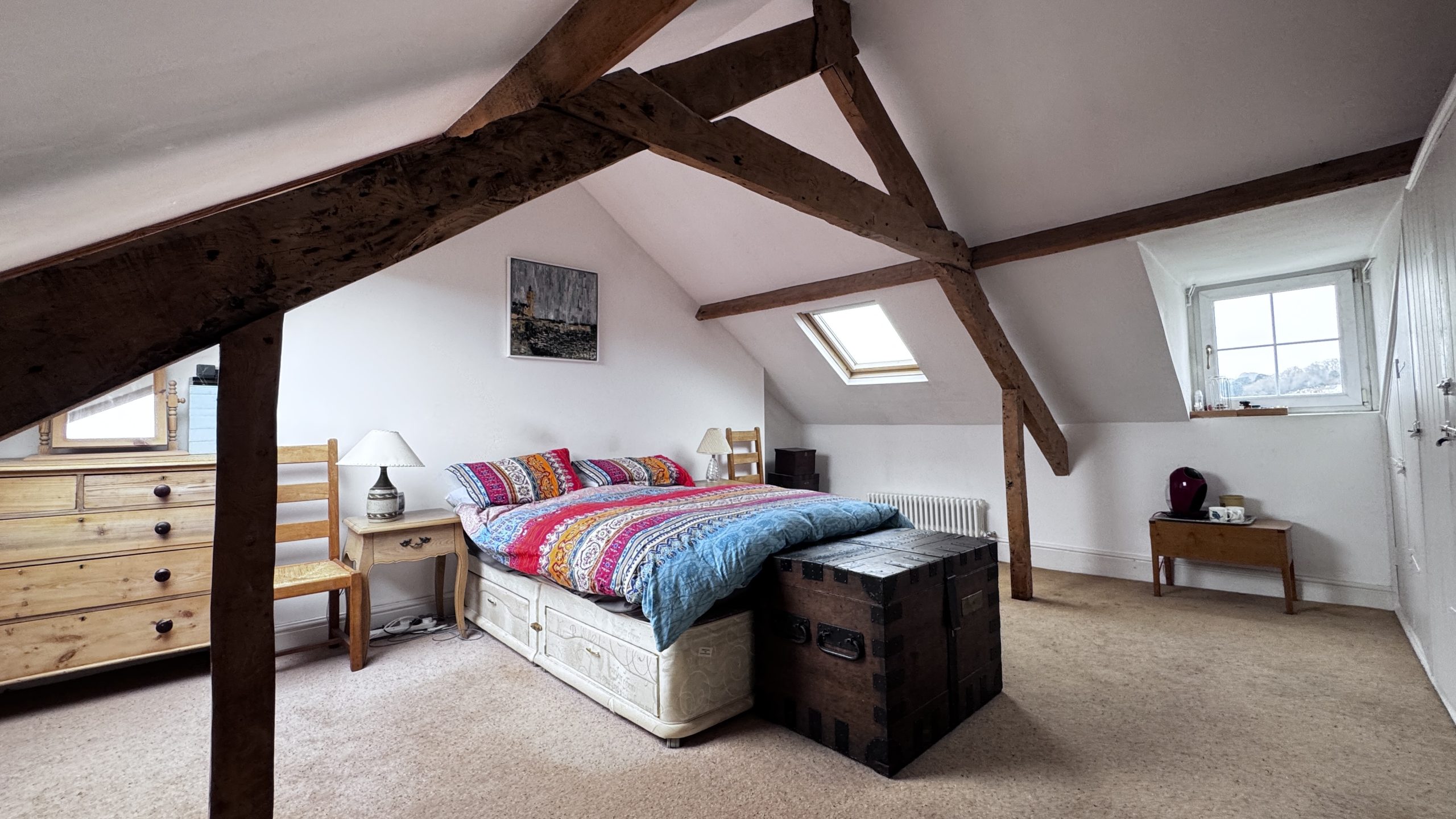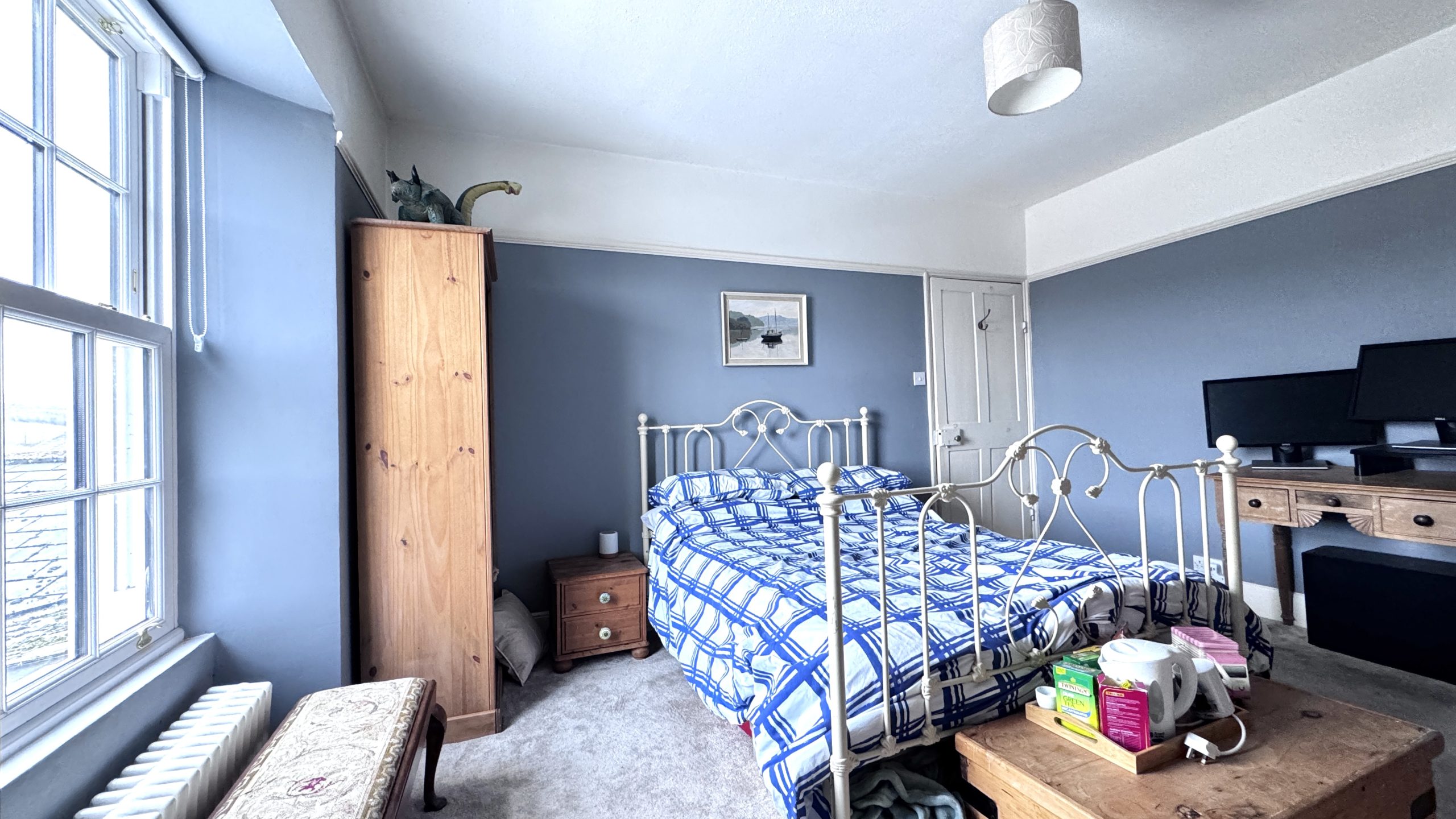 Occupying the second floor is the impressive principal bedroom suite, providing a private and peaceful retreat away from the main living areas. This space benefits from its own en-suite bathroom along with ample built-in wardrobes and cupboard storage, making excellent use of the available space and enjoying far-reaching views towards Dartmoor.