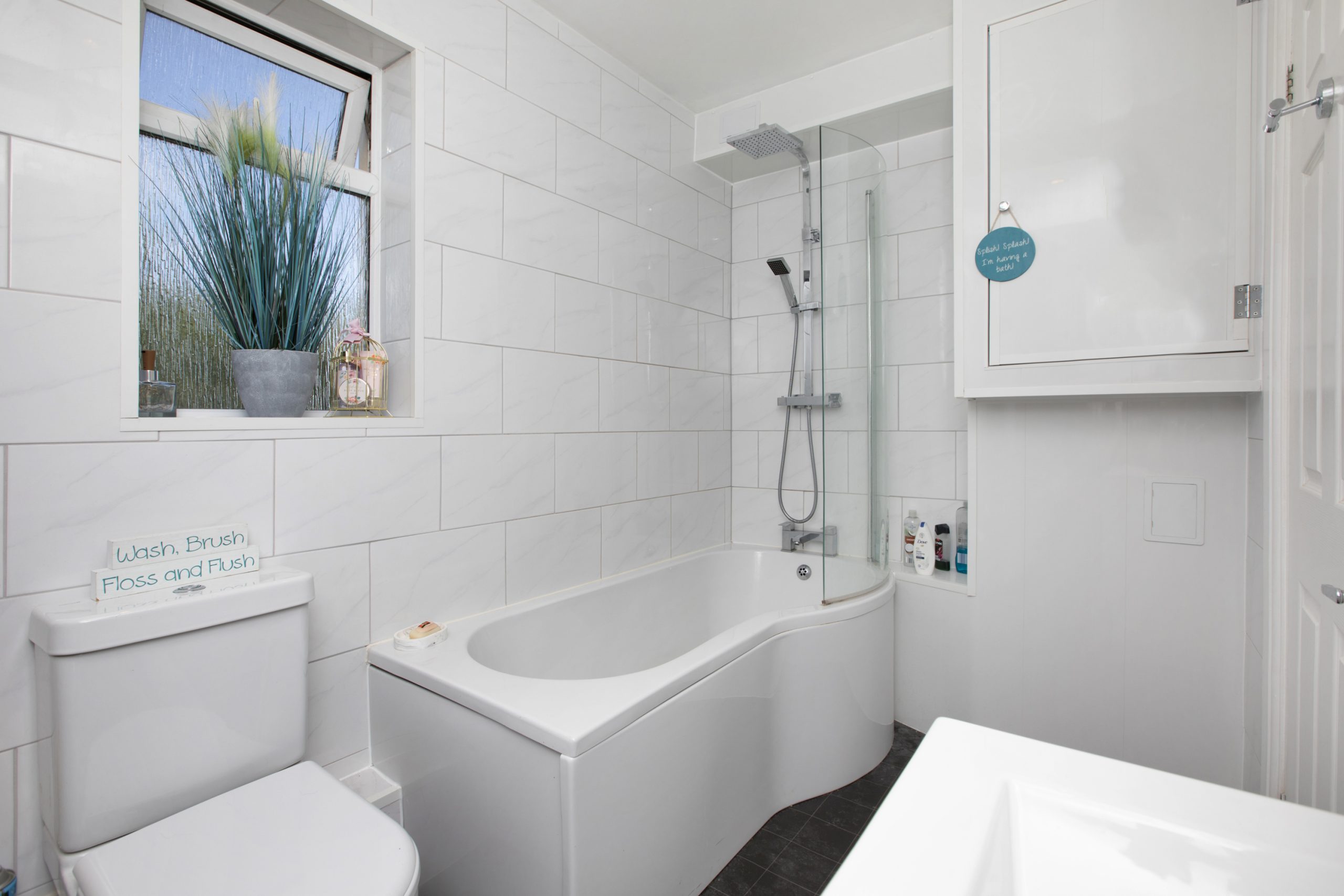 The first floor comprises two well-sized double bedrooms, one of which enjoys dual aspect windows, enhancing the sense of space and natural light. A modern family bathroom serves this floor, featuring a full-sized bath with a shower over, a WC, and a wash hand basin—all finished to a high standard.
