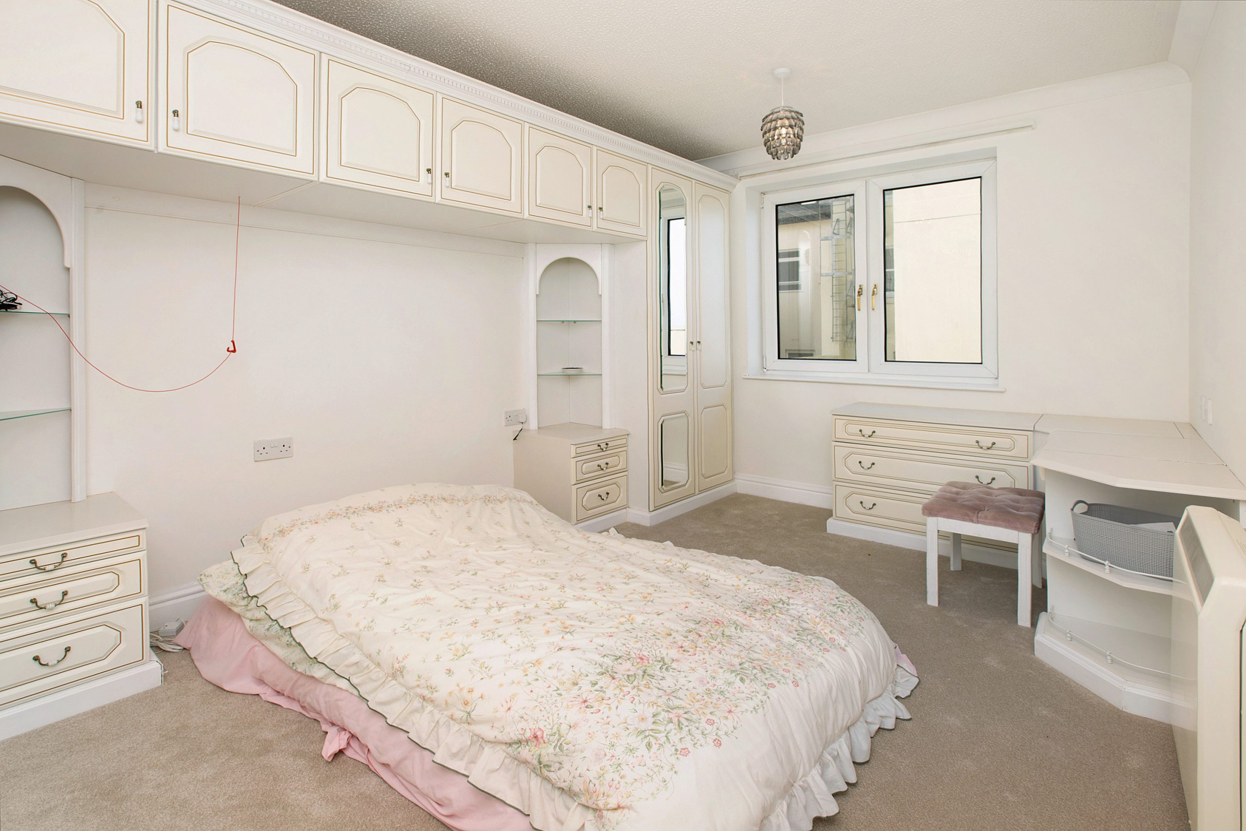 The double bedroom has a uPVC double glazed window with sea views, a wall mounted electric heater and built in cupboards.